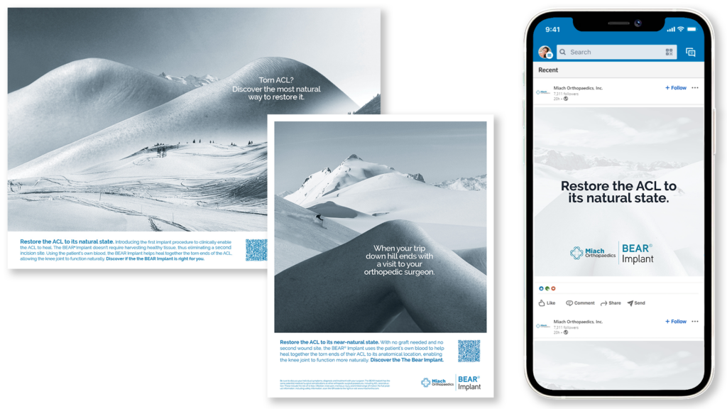 Miach OrthopaedicsTM, the company behind the Bridge Enhanced ACL Restoration (BEAR®) Implant, came to GrayMatter for help marketing to patients and surgeons. With Level 1 clinical data to validate it and thousands of torn anterior cruciate ligaments (ACL) successfully repaired, there was a compelling story to tell about the device’s unique approach to a very common knee injury.